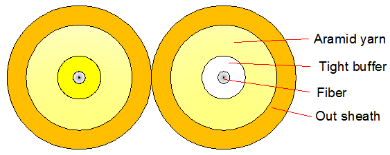 光通信媒体として、Φ600μmまたはΦ900μmのタイトバッファファイバーを使用し、タイトバッファファイバーは、強度部材ユニットとしてアラミドヤーンの層で包まれ、その上に(PVC)または低煙ハロゲンフリー材料(LSZH、低煙、ハロゲンフリー、難燃性)のジャケットを押し出して製造します。